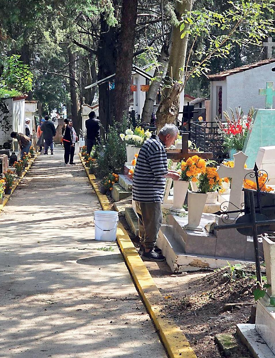 › Familias de Cuajimalpa acudieron temprano para decorar las tumbas de sus difuntos.