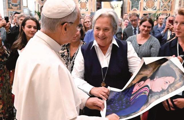 Inaugura la obra, acompañada por Verónica Lezama y alumnos
