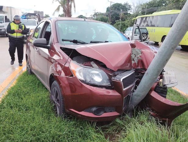 De acuerdo con el parte preliminar, el automóvil circulaba en dirección hacia Cancún cuando derrapó hacia su costado izquierdo, subió al camellón central y terminó impactado contra un poste de alumbrado público.