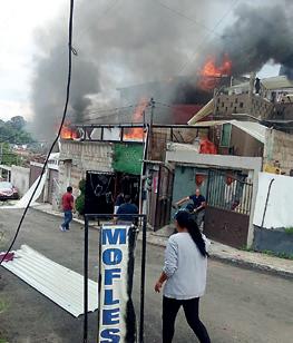 Controlan incendio en Avenida Las Torres Oriente, Loma del Padre, se originó tras la explosión de un tanque de gas.