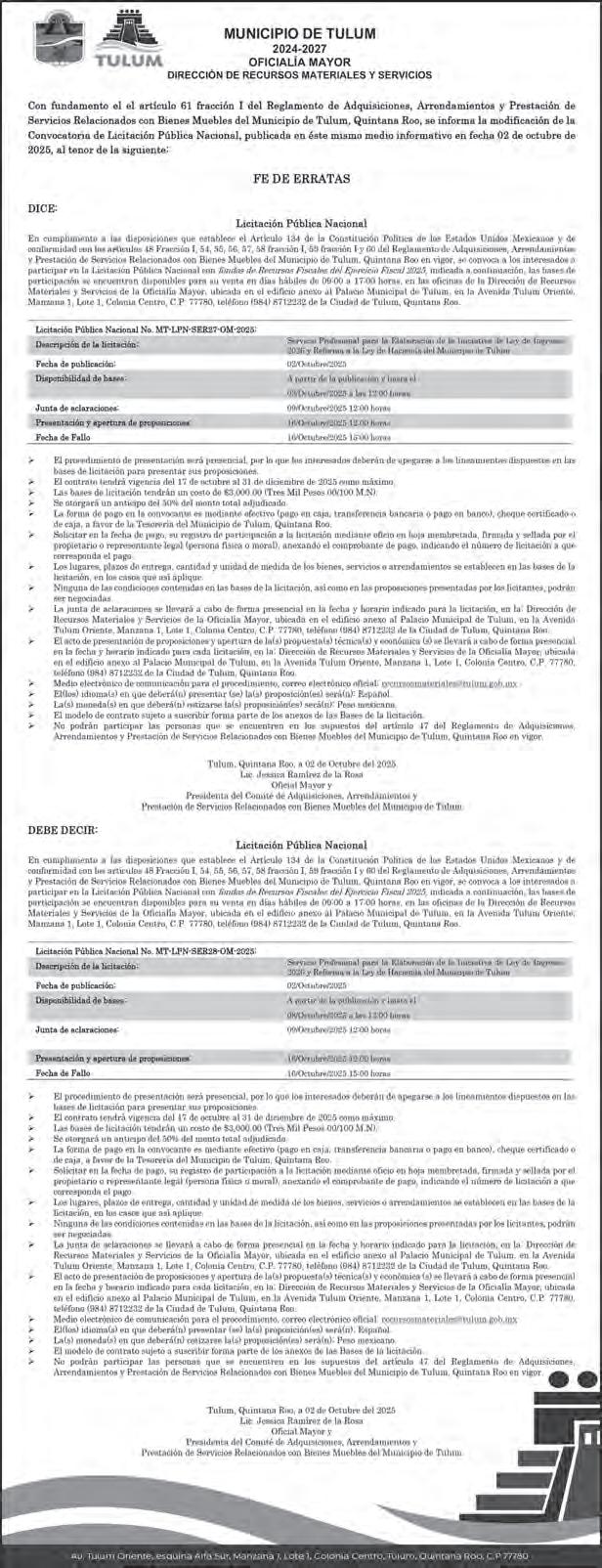 DOS MESES; 152 MDP INVERSIÓN.
