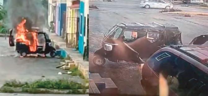 La mañana del domingo, un mototaxi fue consumido por las llamas tras ser incendiado de forma deliberada en la Manzana 102, sobre la avenida Niños Héroes, en la Supermanzana 259 de Cancún. El siniestro, que dejó la unidad completamente destruida, fue reportado por vecinos a través de grupos de WhatsApp alrededor de las 7:42 a.m. Según testigos, un hombre con camiseta azul se acercó al vehículo, lo roció con un líquido inflamable y le prendió fuego. Las llamas rápidamente envolvieron el mototaxi, obligando a los residentes a retirar sus autos y mantenerse alejados ante el temor de que el fuego se propagara a viviendas cercanas.