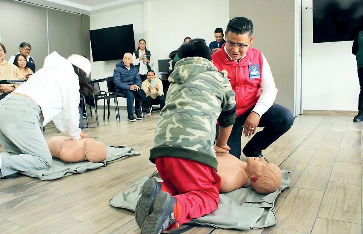 › Los asistentes practicaron técnicas de reanimación cardiopulmonar bajo la supervisión de un experto.