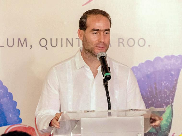 › Diego Castañón Trejo, presidente municipal de Tulum, durante el mensaje de bienvenida.