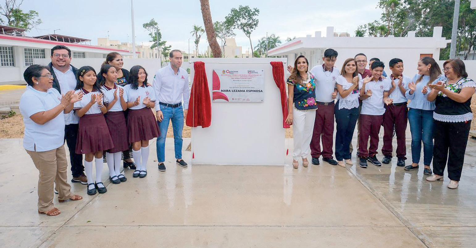 Al inaugurar la escuela secundaria técnica de nueva creación No. 42 “Kinich Ahau”, en su primera etapa, y el domo comunitario, en el residencial Aldea Tulum, la gobernadora Mara Lezama Espinosa expresó que este Gobierno diferente seguirá fortaleciendo la educación pública, porque ese es el camino al bienestar.