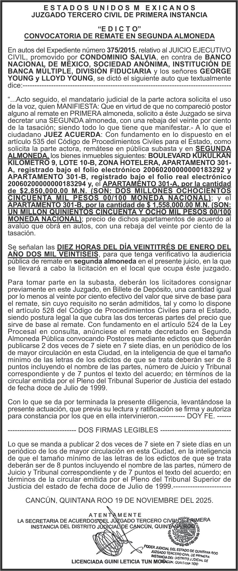 Domicilio de la publicación: Av. Francisco I. Madero, supermanzana 70, manzana 5, lote 27, entre Av. CTM y Calle 47 Norte, C.P. 77510,