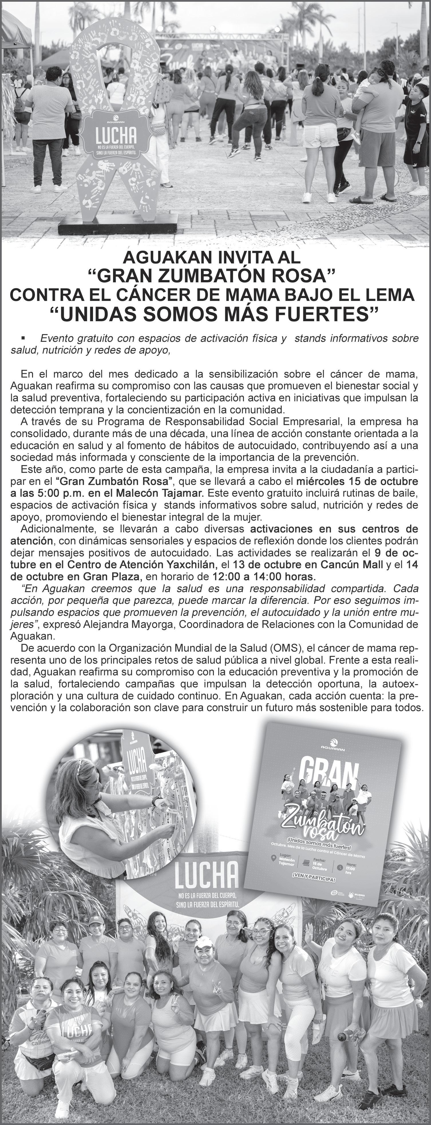 En el marco del Día Mundial de la Lucha contra el Cáncer de Mama, el IMSS de Quintana Roo invitó a las mujeres a participar en la Jornada de Salud que se llevará a cabo el próximo 17 de octubre, destacando que, la detección oportuna eleva las tasas de sobrevida hasta un 95%, ya que permite iniciar tratamientos menos invasivos y con mejores resultados.