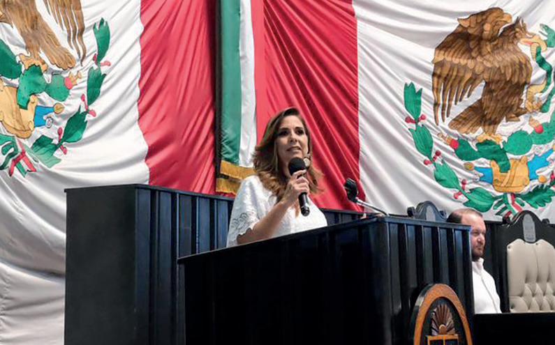 Durante el mensaje que dirigió a las y los quintanarroenses desde la tribuna del Congreso del Estado, en Sesión Solemne presidida por los titulares de los Tres Poderes, presidentes municipales, legisladores y representantes federales, la gobernadora de Quintana Roo afirmó que se consolida la transformación en el Estado.