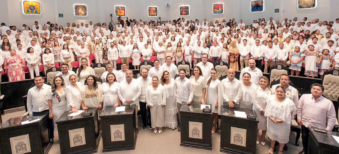 Mara Lezama hizo un reconocimiento a los diputados constituyentes, al primer Gobernador Constitucional Jesús Martínez Ross, a los dignatarios mayas herederos de la lucha ancestral, a las y los pioneros que contribuyeron a la construcción de este gran estado.