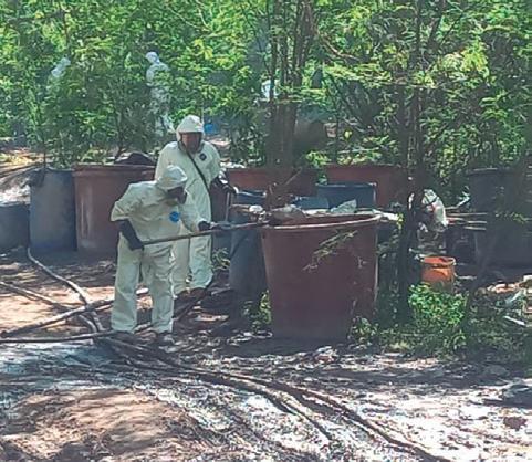 DATO CIFRAS EN EL LUGAR SE ASEGURARON TAMBIÉN DIVERSOS PRECURSORES QUÍMICOS, ENTRE ELLOS MIL LITROS DE ÁCIDO CLORHÍDRICO, 200 LITROS DE ÁCIDO ACÉTICO, MIL LITROS DE TOLUENO, 200 LITROS DE CIANURO DE BENCILO, 250 LITROS DE P2P, 575 KILOGRAMOS DE SOSA CÁUSTICA Y 200 KILOGRAMOS DE CIANURO DE SODIO.