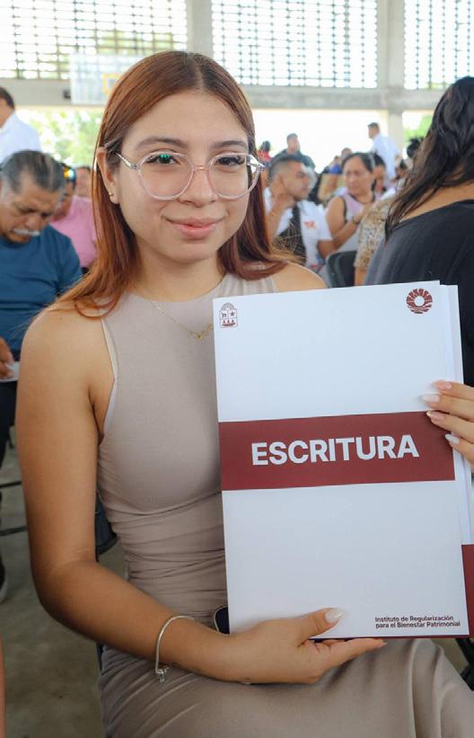 la participación de los vecinos de las colonias beneficiadas, por confiar y acercarse para gestionar las escrituras. Dijo que a la fecha se han entregado mil 145 escrituras que representan certeza jurídica en sus viviendas en Cancún. En el presídium también estuvieron Rosaura Gandelero Vicente, beneficiaria de la colonia Rivera 1, quien recibió sus escrituras después de 25 años de espera; el regidor Samuel Mollinedo Portilla, presidente de la Comisión de Desarrollo Urbano y Movilidad; Pablo Gutiérrez Fernández, secretario General del Ayuntamiento de Benito Juárez; el titular de Sedetus, José Alberto Alonso Ovando; Mariann González Pliego, directora general del Registro Público de la Propiedad y del Comercio de Quintana Roo, y Nora Elizabeth Garza Ramírez, directora del Instituto de Regularización para el Bienestar Patrimonial.
