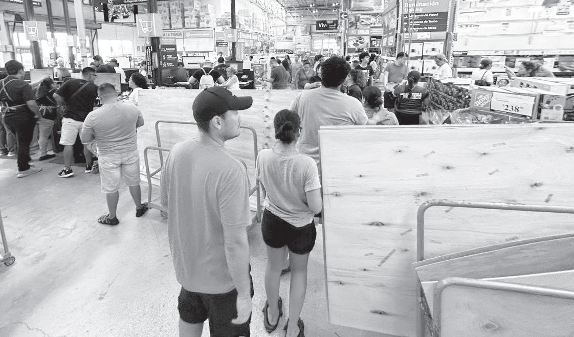 Inician las compras de pánico en tiendas y supermercados; la gente adquiere artículos como tablas de madera para proteger puertas y ventanas ante la presencia del huracán “Beryl” en el Caribe.