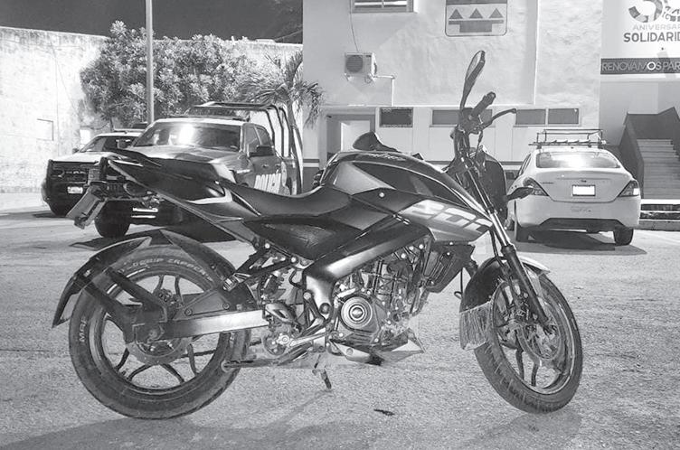 Seguridad. Asegura Policía Municipal de Solidaridad una motocicleta marca Bajaj, tipo Pulsar con reporte de robo en el estacionamiento de una tienda de autoservicio del fraccionamiento Puerto Maya.