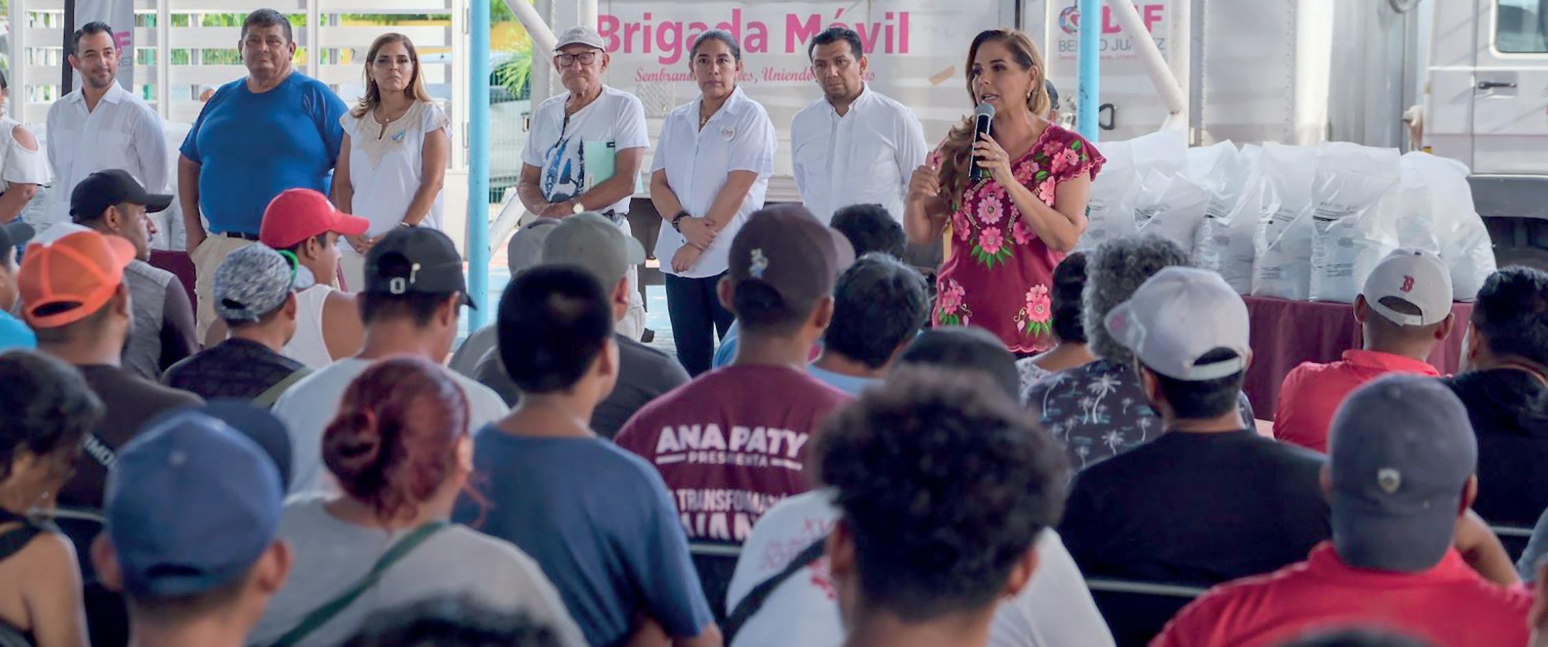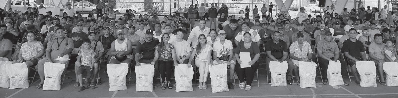 Trabajadores del sector pesquero independiente de Benito Juárez que se vieron afectados por las lluvias torrenciales, recibieron de la gobernadora Mara Lezama Espinosa apoyos alimentarios durante un evento realizado en el parque urbano de Puerto Juárez en Cancún.