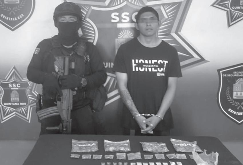 En recorridos de vigilancia, elementos de la Secretaría de Seguridad Ciudadana, al circular sobre la avenida Santiago Pacheco Cruz con calle 50 de la colonia Cecilio Chi, del municipio de Felipe Carrillo Puerto, con dirección a la calle 52; se percataron de un motociclista quien en su mano llevaba una bolsa de tela de color negro y al observar la presencia de los oficiales, escondió la bolsa debajo de su playera y aceleró su marcha, manejando de forma temeraria. Al darle alcance, se realizó la inspección correspondiente a Oscar “N”, en la que se le decomisaron: 10 bolsas tipo “ziploc”, con hierba verde seca con las características de la marihuana, cuatro de ellas marcadas con las palabras “Fajer, Lolo, Vinilo y Nenuco”, ocho bolsitas tipo “ziploc” con polvo de color naranja característico