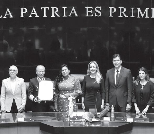 › Ante el Pleno de la Cámara, la presidenta de la Mesa Directiva le entregó la presea al secretario.
