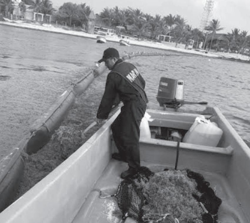 Esto ha derivado a que con sus propios medios y colocando barreras elaboradas de manera artesanal con redes de pesca, traten de evitar que la macroalga se acumule en la playa y genere afectaciones para poder atraer turismo.