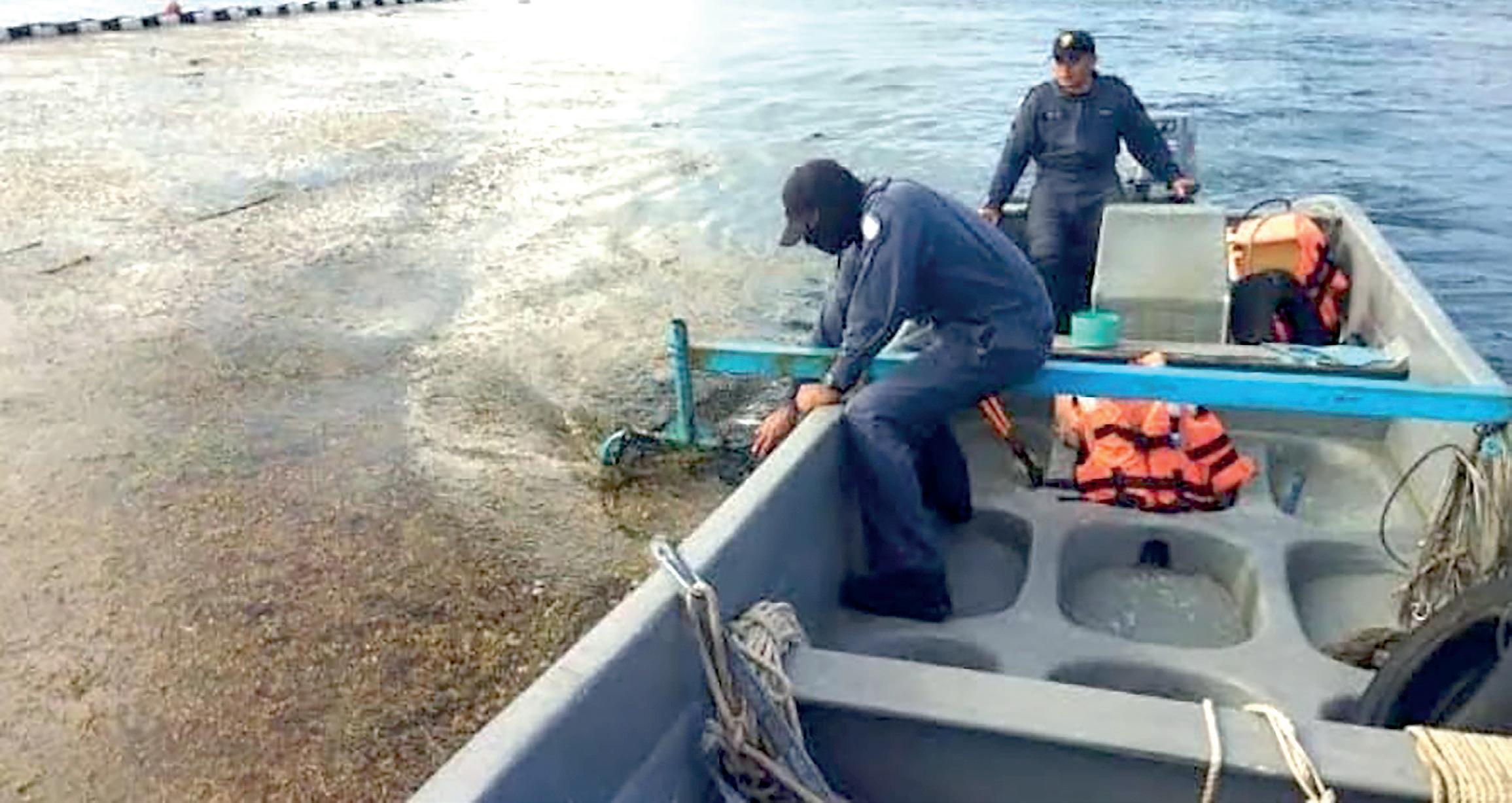 Trasiego. La Semar informó que los elementos aseguraron un paquete con material parecido a la cocaína, flotando entre el sargazo en inmediaciones del muelle de pescadores en el poblado de Mahahual.