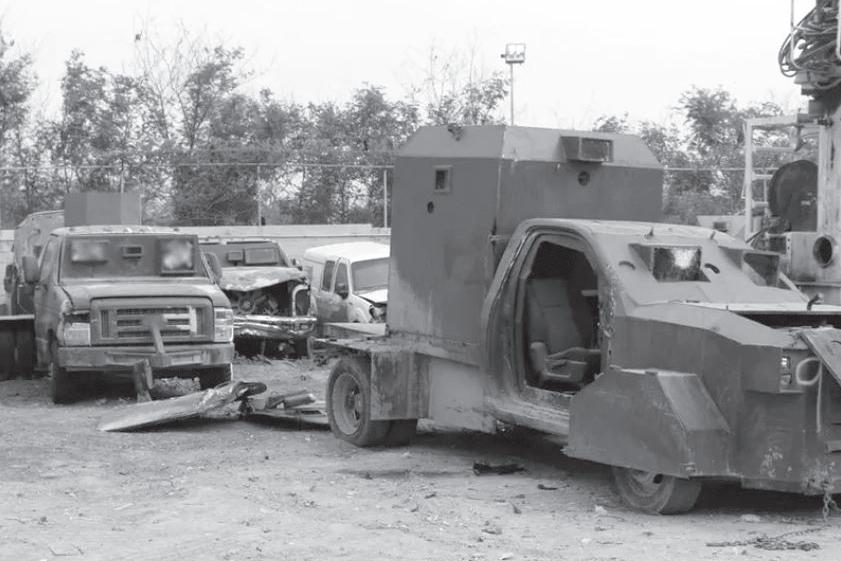 Seguridad. La Fiscalía General de la República destruyó 42 vehículos con blindaje artesanal incautados en Tamaulipas, utilizados por células del crimen organizado en enfrentamientos con las Fuerzas Armadas.