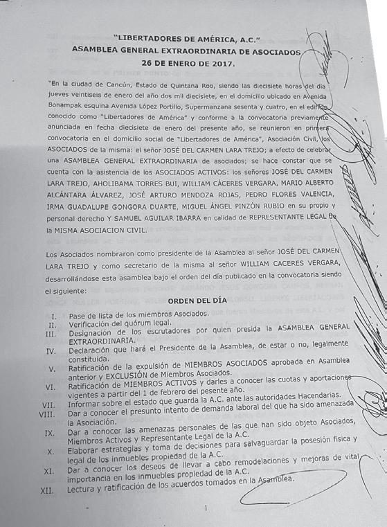 › El aludido presentó un documento en donde no cuenta con antecedentes registrales, así como copias de los acuerdos de las asambleas avaladas por notario público.