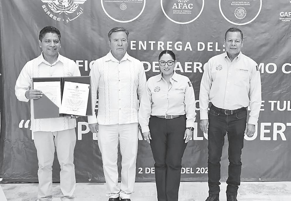 En medio de los positivos resultados que registra en su tráfico de pasajeros, el Aeropuerto Internacional “Felipe Carrillo Puerto” de Tulum recibió el certificado de Aeródromo Civil para Servicio al Público por tres años.
