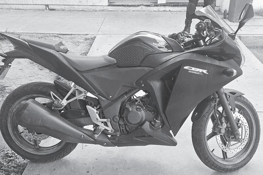 Seguridad. Recupera la Policía Municipal de Solidaridad una motocicleta marca Honda, modelo CBR250 con reporte de robo sobre la calle 38 de la colonia El Pedregal, cuando realizaban labores de vigilancia.