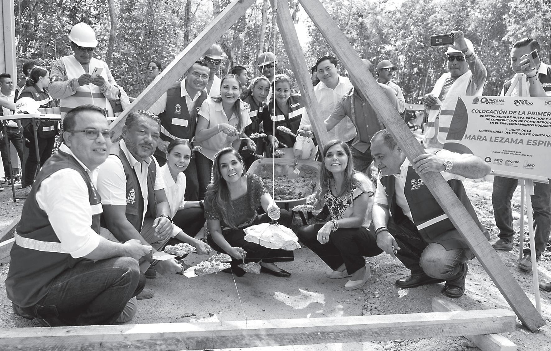 › La gobernadora Mara Lezama Espinosa encabezó ayer la colocación de la primera piedra de la escuela secundaria de nueva creación del fraccionamiento Kusamil.