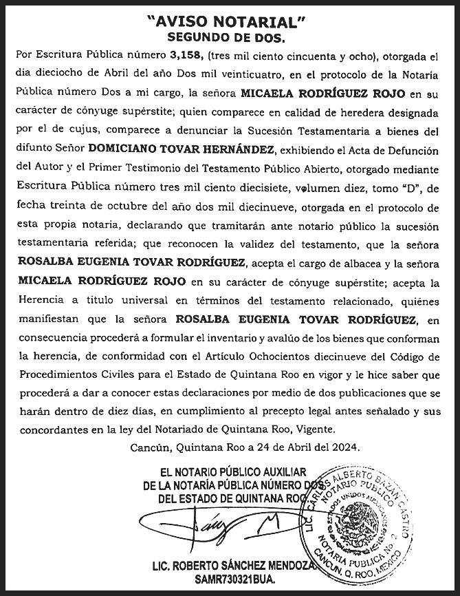 Felicito a Pepe Gómez por este 24 aniversario, es un periódico muy importante en Quintana Roo, un medio objetivo, les deseo mucha suerte y que sigan los éxitos en Quequi.” Fernando Muñoz Calero/ Presidente del PVEM de