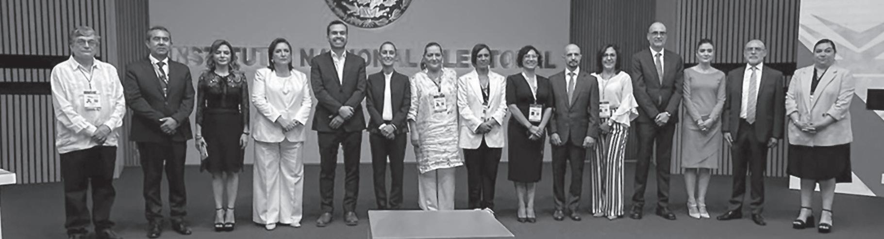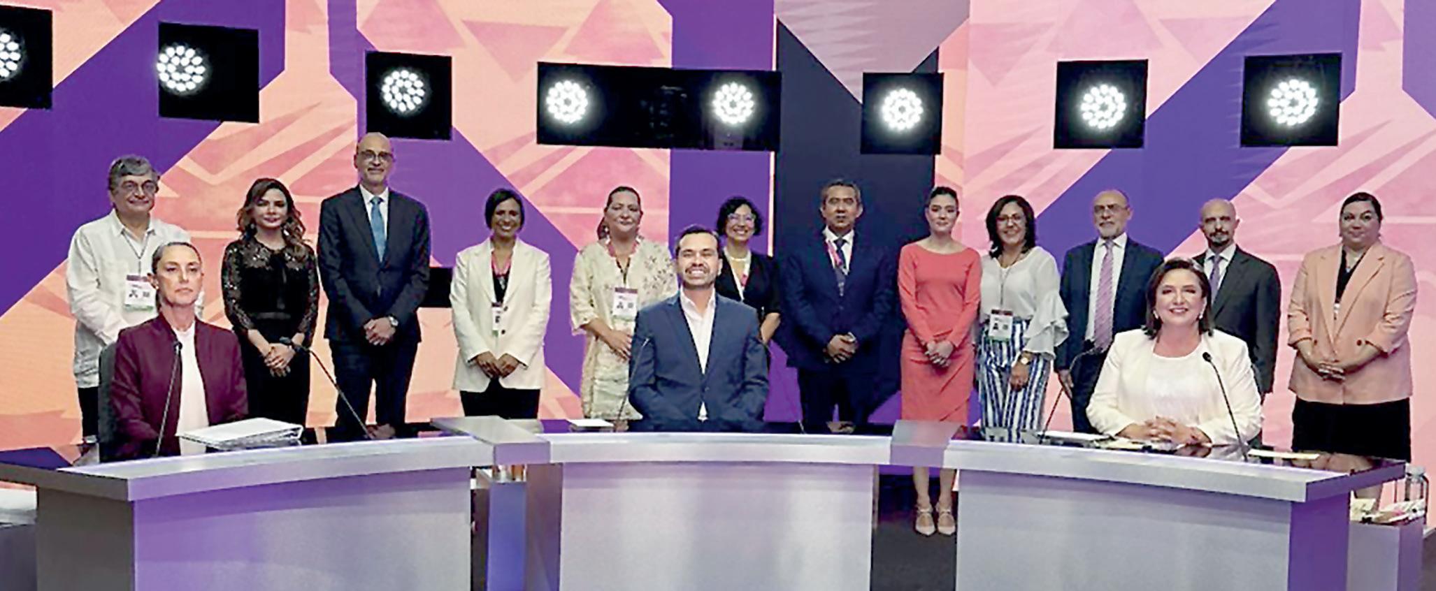 CLAUDIA SHEINBAUM PARDO, JORGE ÁLVAREZ MÁYNEZ Y XÓCHITL GÁLVEZ RUIZ, acompañados por los consejeros del INE, previo al debate.