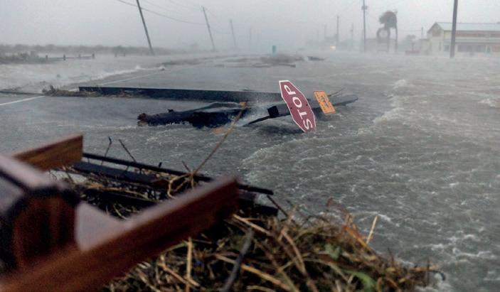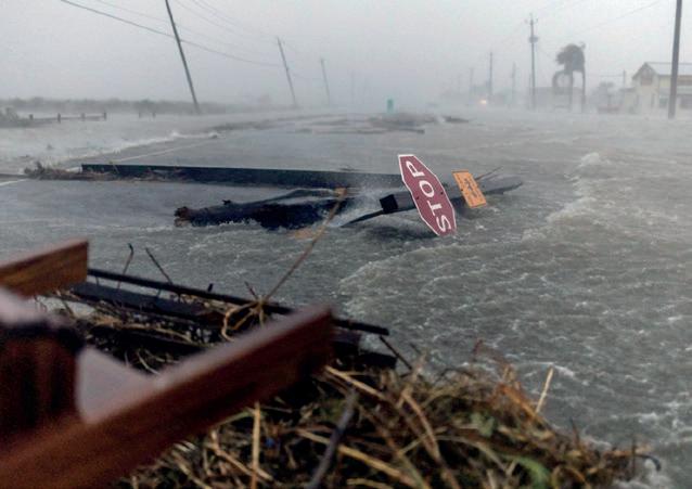 “Marejadas ciclónicas que amenazan la vida, ráfagas de viento e inundaciones y lluvia continúan sobre el este de Texas”, alertó el Centro Nacional de Huracanes (NHC,