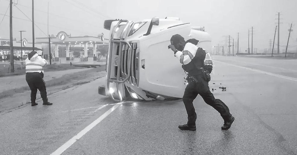 Fotos de árboles caídos sobre vehículos, vías inundadas con autos atrapados y destrozos eran compartidas por las autoridades en la red social X (antes Twitter). Al menos un conductor que quedó atrapado con su vehículo en una vía inundada en Houston fue rescatado.