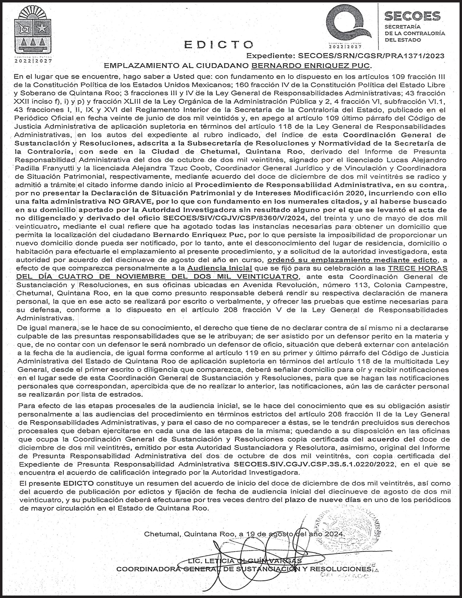 JORGE ARTURO SANÉN CERVANTES, PRESIDENTE DE LA JUNTA DE GOBIERNO Y COORDINACIÓN POLÍTICA, LEYÓ EL DECRETO POR EL QUE SE ERIGIÓ EL ESTADO LIBRE Y SOBERANO DE QUINTANA ROO.