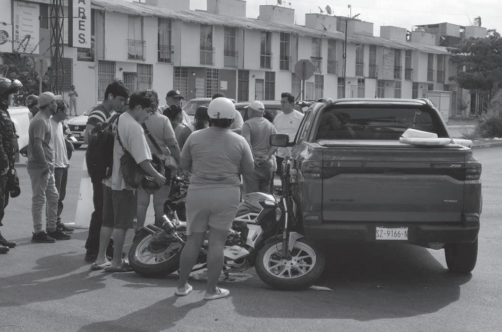 Accidente. Motociclista resultó lesionado tras impactarse contra una camioneta en la avenida Constituyentes del 74 con Territorio Federal, cerca de la Multiplaza Chetumal; no logró detenerse a tiempo y chocó.