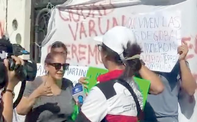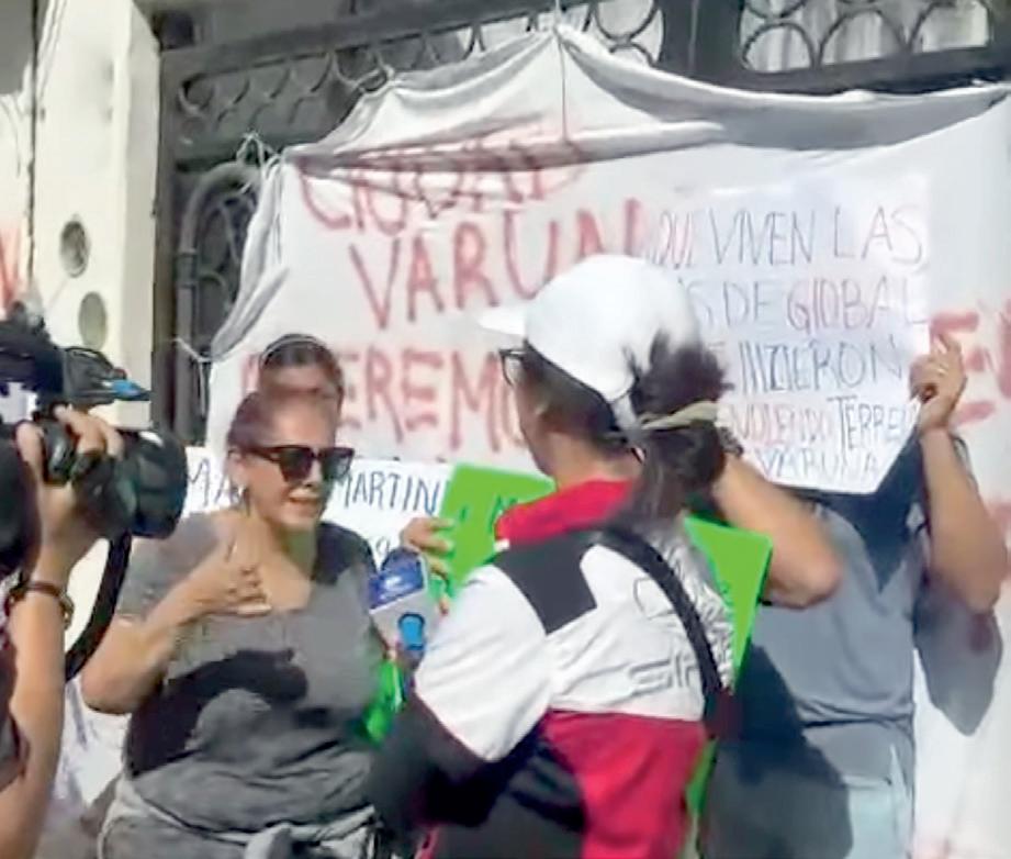 COLOCARON MANTAS EN LOS ACCESOS de las oficinas de Global Martínez, para impedir el paso a los responsables de la empresa.