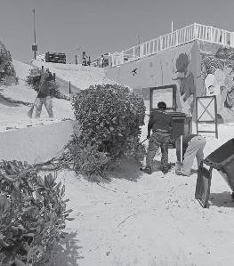 Personal de Zofemat y de Servicios Públicos realizan labores de limpieza en las playas públicas.