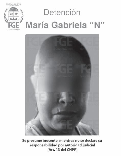 sexuales; la detención de estas personas deriva de diversos actos de investigación por parte de la Fiscalía Especializada en Combate a Delitos de Trata y Explotación de Niñas, Niños y Adolescentes. Tras recabar los datos de pruebas, esta representación social obtuvo de un juez de control la orden de aprehensión en contra de María Gabriela “N”, quien presuntamente también está involucrada en los mismos hechos; el mandato judicial fue cumplimentado por lo que en breve se llevará a cabo la audiencia de formulación de imputación. Cabe destacar que los vinculados Elvira “N” y Juan Carlos “N” permanecerán en prisión preventiva justificada durante el proceso penal.