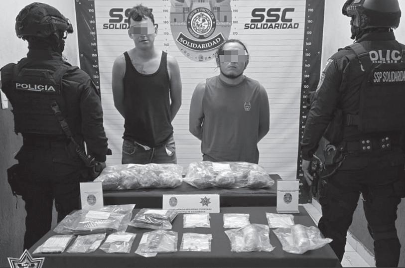 Narcomenudeo. Arresta la Policía Municipal de Solidaridad a Cristian “N” y Leonardo “N” con 45 dosis de marihuana y cristal, 5 pastillas, 1 cargador, 5 cartuchos y una moto en la colonia Zazil-Ha.