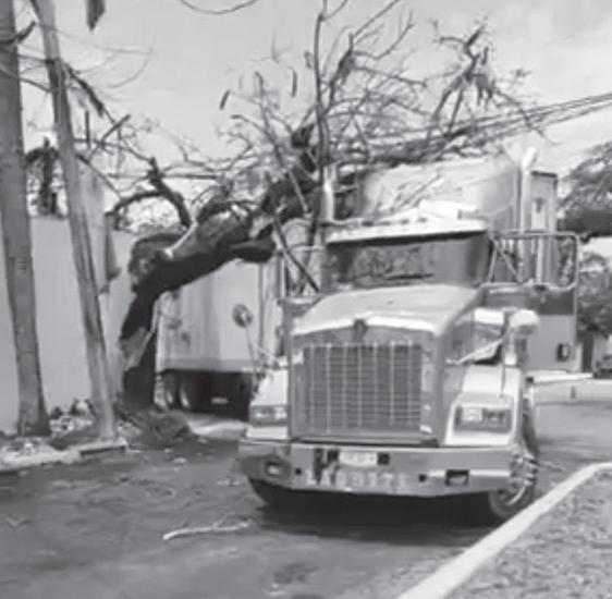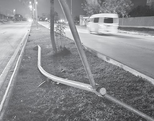 › La unidad accidentada chocó contra dos postes de alumbrado público y una palmera derribándolos.