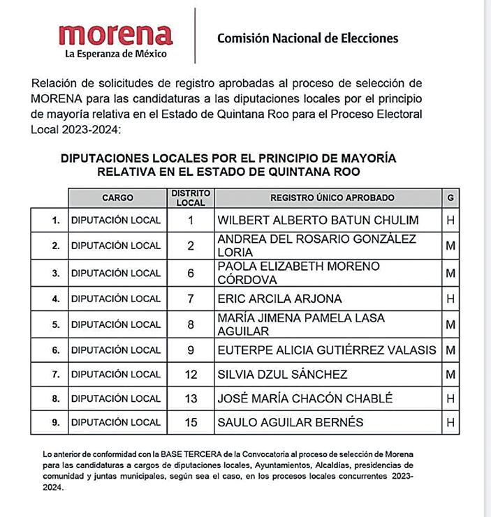 MORENA LA LISTA DE SUS CANDIDATOS AL CONGRESO DEL ESTADO, REGISTRADOS EL MIÉRCOLES ANTE EL IEQROO. ›3 Viernes I 15 de Marzo de 2024 No. 8220 I Año 23 Tu Periódico Quequi PeriodicoQuequi Periodico_quequi