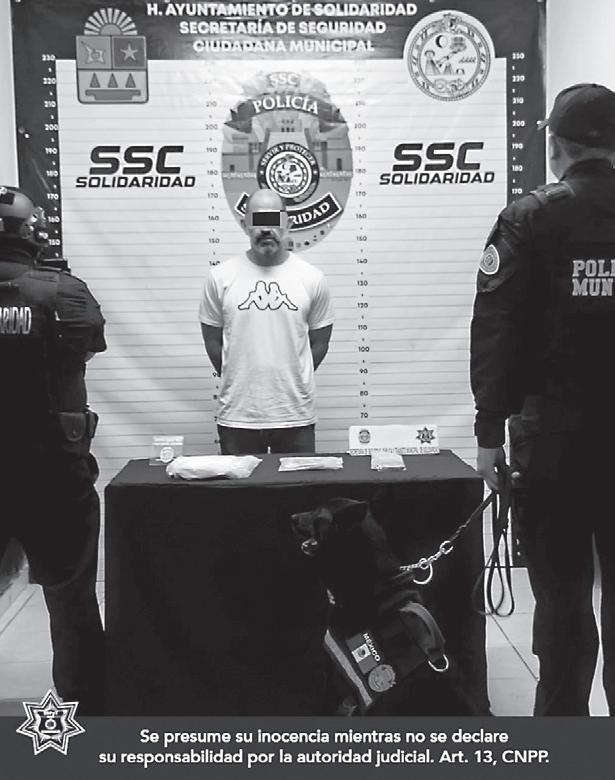 Policías Municipales de Solidaridad aseguraron a un sujeto que conducía de manera imprudente, así como dos bolsas con posibles drogas como cocaína y marihuana en la colonia Forjadores.