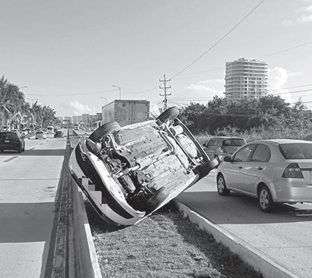› Tras perder el control, se subió al camellón, provocando la volcadura del carro sobre su costado izquierdo.
