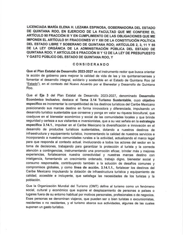 Como lo dio a conocer Carlos Felipe Fuentes del Río, quien encabeza la Consejería Jurídica del Poder Ejecutivo (CJPE), el decreto fue firmado por Mara Lezama Espinosa, gobernadora del estado, la semana pasada.
