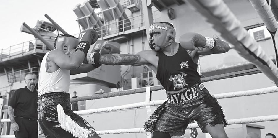 Con el ring de boxeo justo en la cubierta del USS Iowa y el puente Vincent Thomas al fondo, las imágenes no logran describir el increíble entorno.