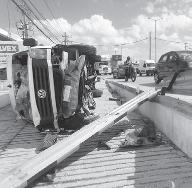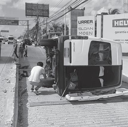 Por Ramón Uresti Hernández › Quequi Un joven de 26 años que conducía una van VW tipo Crafter de color blanco sobre el bulevar Luis Donaldo Colosio, en dirección hacia Puerto Morelos, resultó lesionado al no tomar en cuenta las condiciones de la vía por lo que, al circular a exceso de velocidad, perdió el control de su unidad, chocando con un muro de contención metálica provocando su volcadura so-