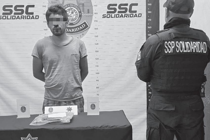 Delitos. La Policía Municipal de Solidaridad aseguró a Javier “N” en la colonia Colosio, tras ser señalado de entrar a un negocio y realizar un asalto en grado de tentativa con una réplica de arma de fuego.