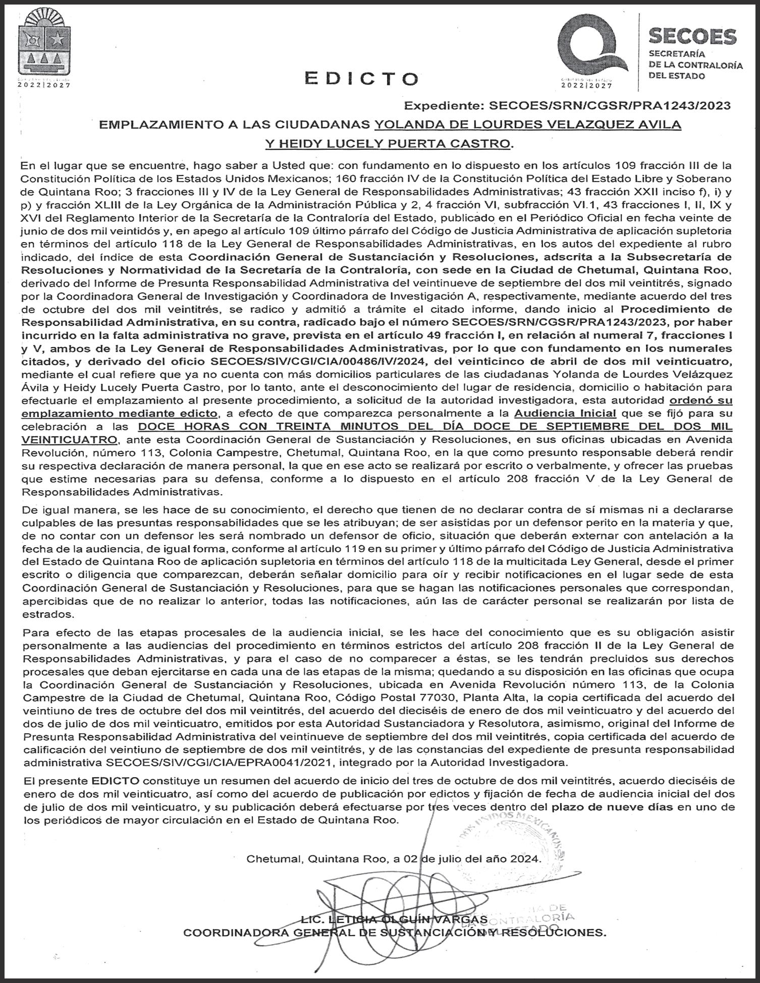 gado presentó los documentos legales que respaldan la medida, la cual fue ordenada por un juez, como parte de la resolución del caso.