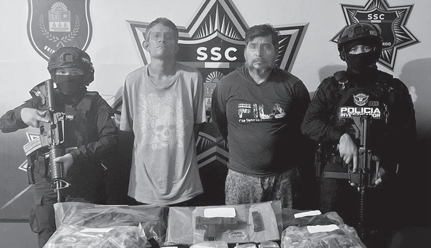 Elementos de la Secretaría de Seguridad Ciudadana realizaron la detención de dos sujetos, identificados como Omar “N” y Juan “N”, presuntos implicados en delitos contra la salud y violación a la Ley Federal de Armas de Fuego. En un recorrido de vigilancia, agentes de la Secretaría de Seguridad Ciudadana (SSC) se percataron de la presencia de dos sujetos, quienes estaban parados a la altura de la cajuela de un automóvil intercambiando bolsitas de plástico transparentes que en su interior contenían vegetal verde y seco. Los hechos ocurrieron en la avenida 135, entre avenida Roble y avenida de los Árboles, del fraccio-