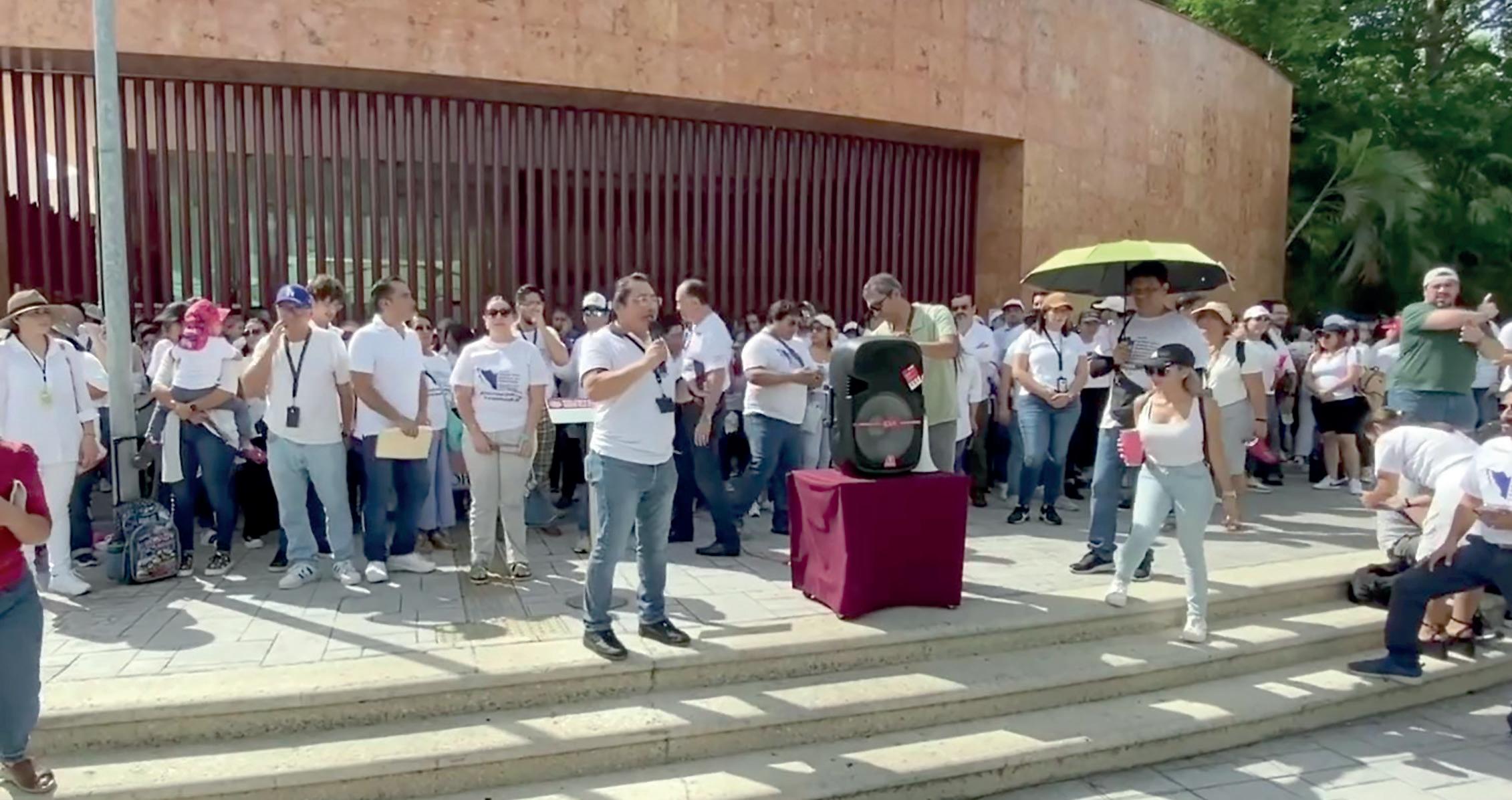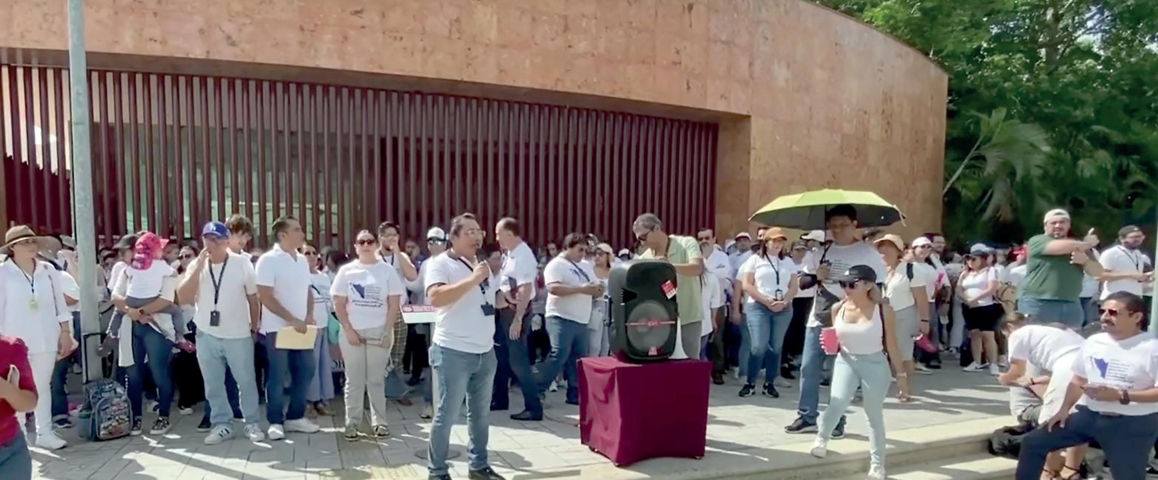 ALREDEDOR DE 600 TRABAJADORES, entre abogados, jueces y personal administrativo, se declararon en paro frente al edificio ubicado sobre la avenida Andrés Quintana Roo, en Cancún.