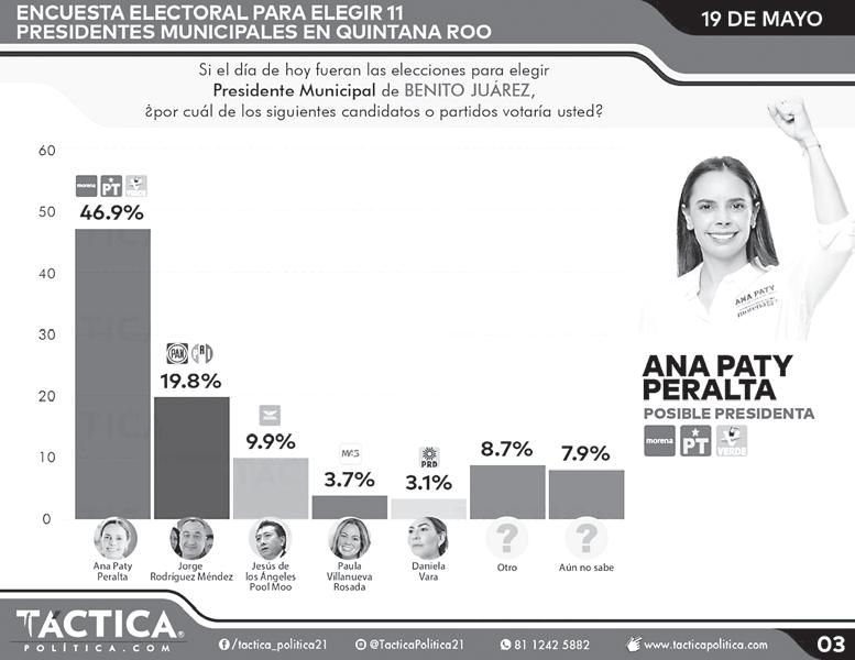 Cancún. Ana Paty Peralta avanza a paso firme, y los resultados de su administración le han valido la confianza de la ciudadania, ratificándola como la futura ganadora.