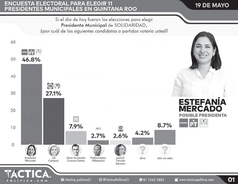 Solidaridad. La candidata Estefanía Mercado se consolida como la preferida por el pueblo, por lo que todo indica, según las encuestas, que sería la próxima presidenta.